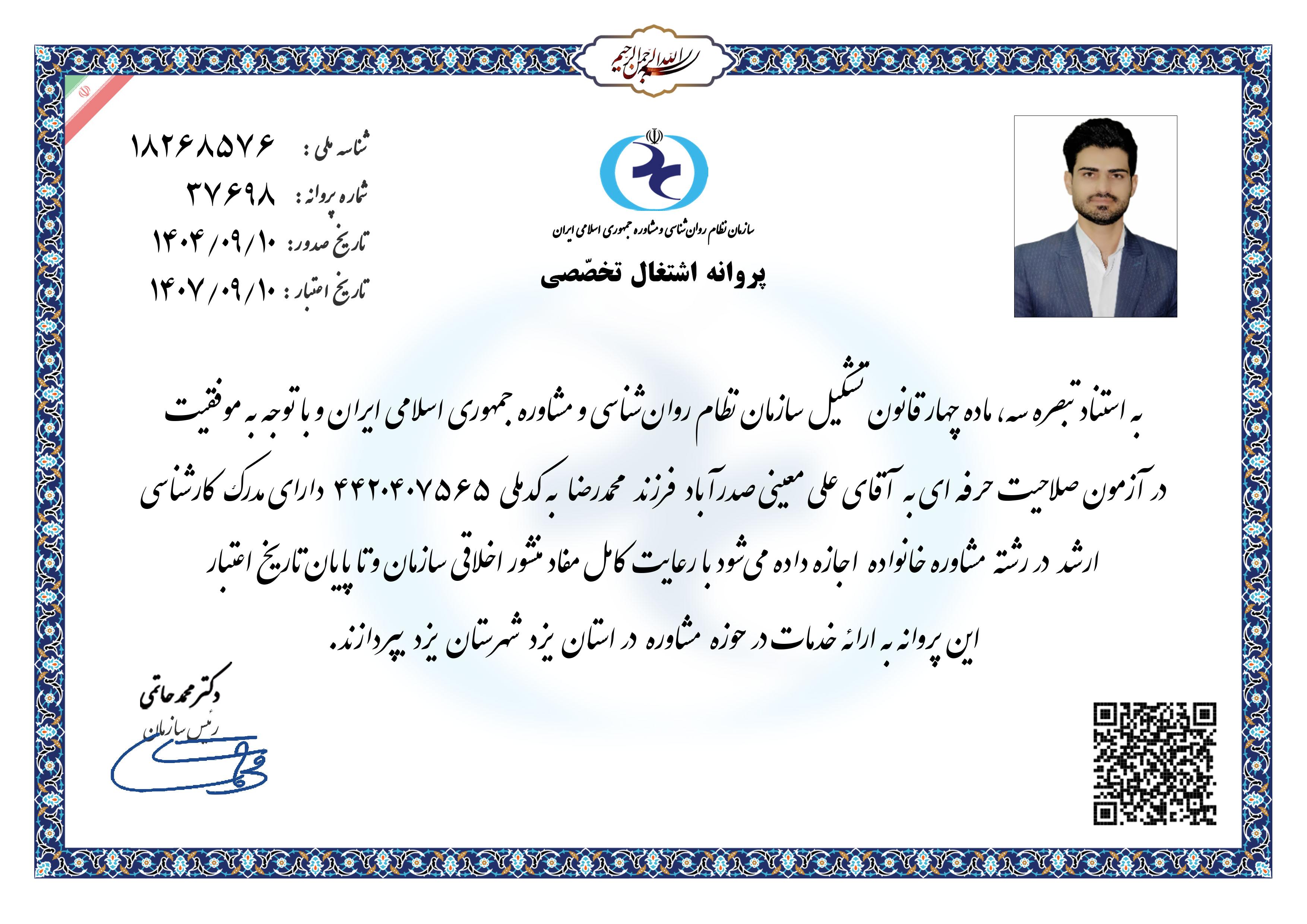 متخصص در حوزه ی روابط با ارائه ی رساله ی تخصصی روابط «TA»در مقطع ارشد