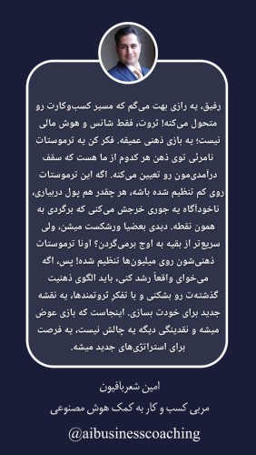 من امین شعربافیون هستم و اینجا هستم تا داستانم را با شما به اشتراک بگذارم؛ داستانی که از دنیای مهندسی مکانیک در دانشگاه صنعتی اصفهان شروع شد و به شور و علاقه واقعی من یعنی مدیریت کسبوکار و در نهایت، کوچینگ کسبوکار با رویکرد هوش مصنوعی (AI Business Coaching) رسید.
