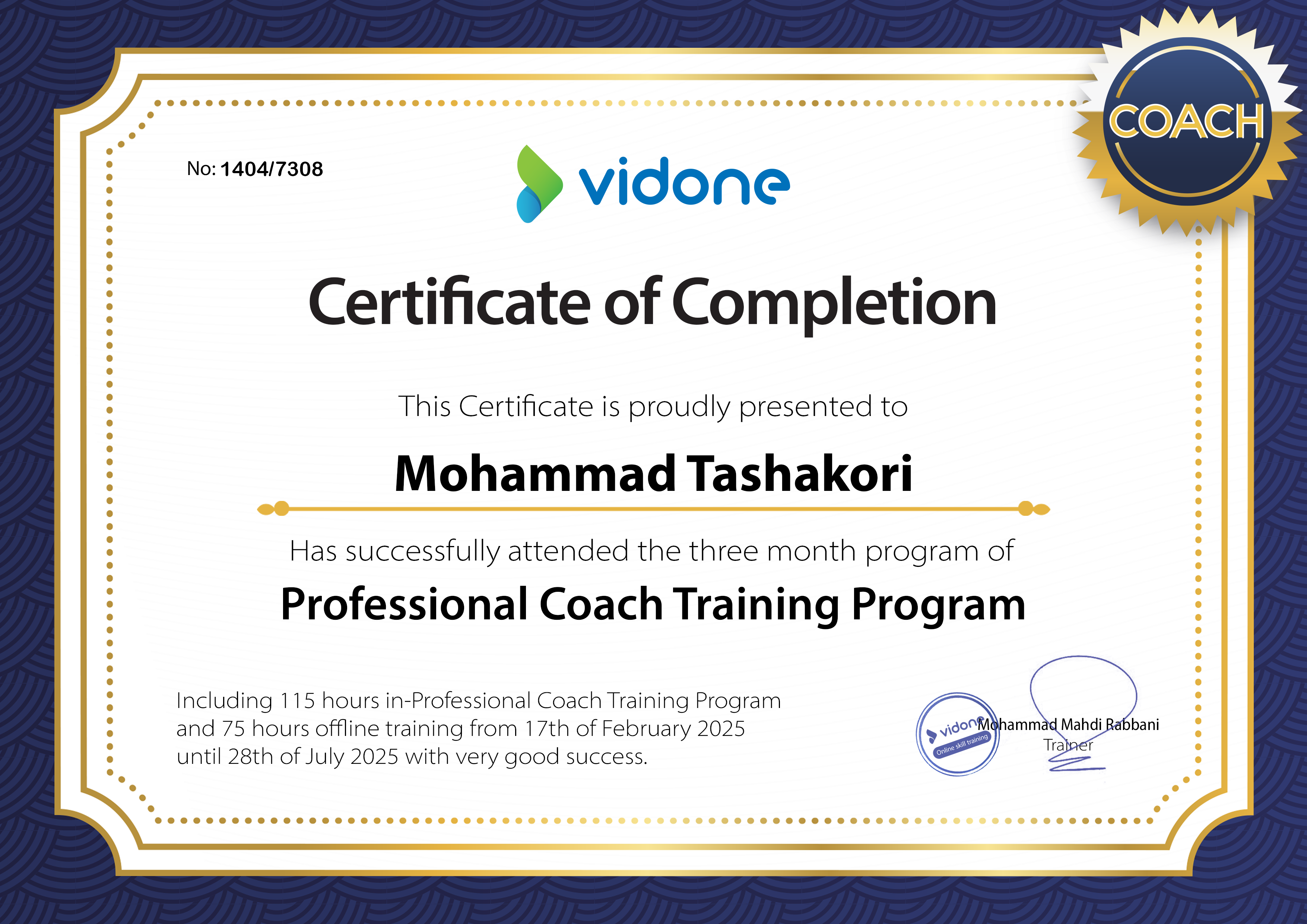 من محمد تشکری هستم؛ مهندس، کوچ تحول فردی و بیزینس کوچ. مسیر زندگی و شغلی خودم را با کمک کوچینگ متحول کردهام و امروز با افتخار در کنار جوانانی هستم که به دنبال معنا، وضوح و رشد واقعی در زندگی و کسبوکار خود هستند.