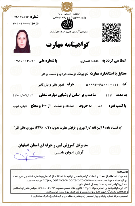 برگزاری جلسات کوچینگ، منتورینگ و مشاوره و خدمت رسانی به افراد و کسب و کارها در مسیر رشد و شکوفایی هرچه تمام تر ایشان تخصص، رسالت و علاقه من است.