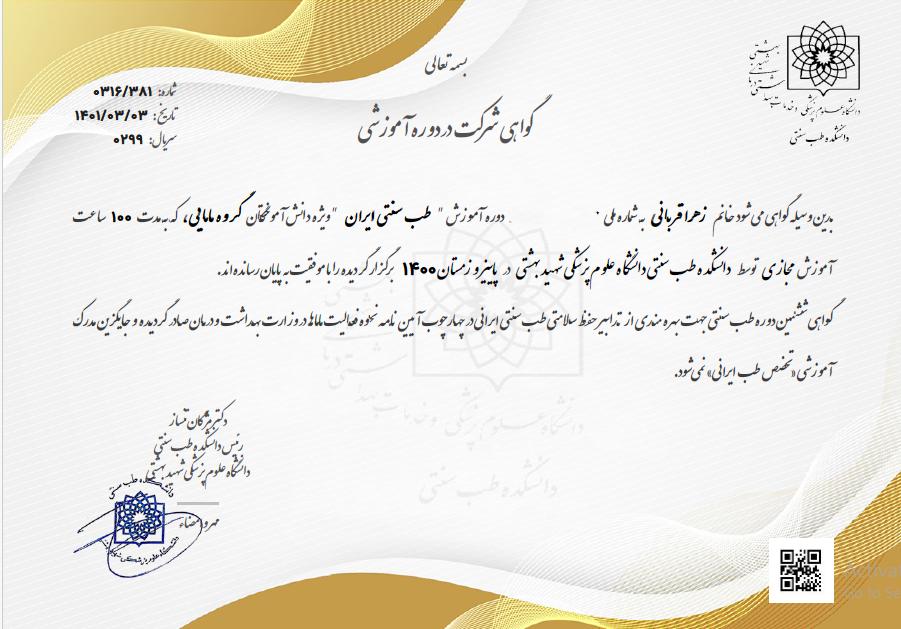 دوره 100 ساعته طب سنتی ایران (در سه ترم مجزا)
